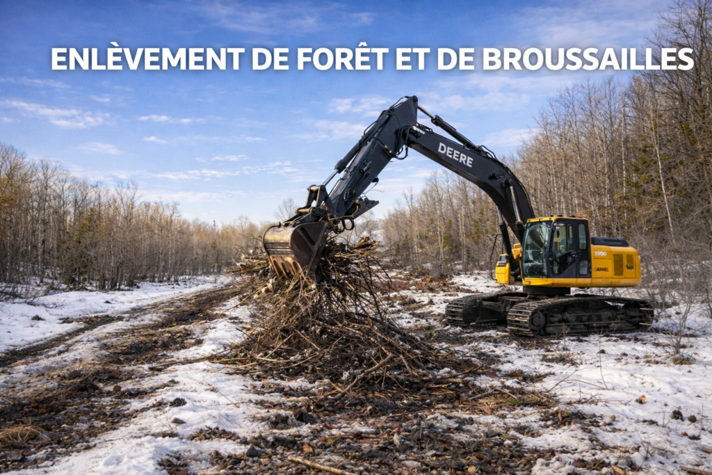 La préparation de votre terrain pour une construction commence par un déboisement adéquat. Nous retirons les arbres, les broussailles, les racines et les débris afin de créer un site propre et prêt à construire.